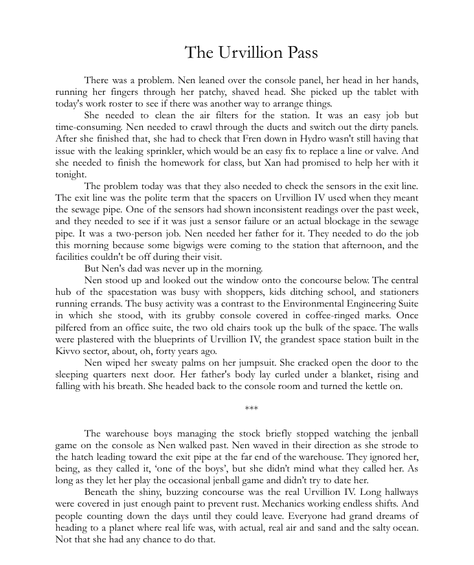 Step into a crumbling space station where survival depends on one girl's determination to break free. The Urvillion Pass is a standalone short story that weaves a gripping tale of resilience, friendship, and the courage to save yourself when no one else will.